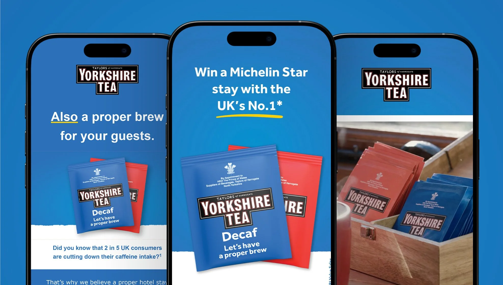 Two campaigns that were aimed at buyers of hotel groups that shared the same values as Yorkshire Tea. We reached this audience at different touchpoints, successfully steeping Yorkshire Tea Original and Decaf into the hotel hospitality conversation - proving that sometimes, the path to making guests feel at home starts with something as simple as a perfect cup of tea.